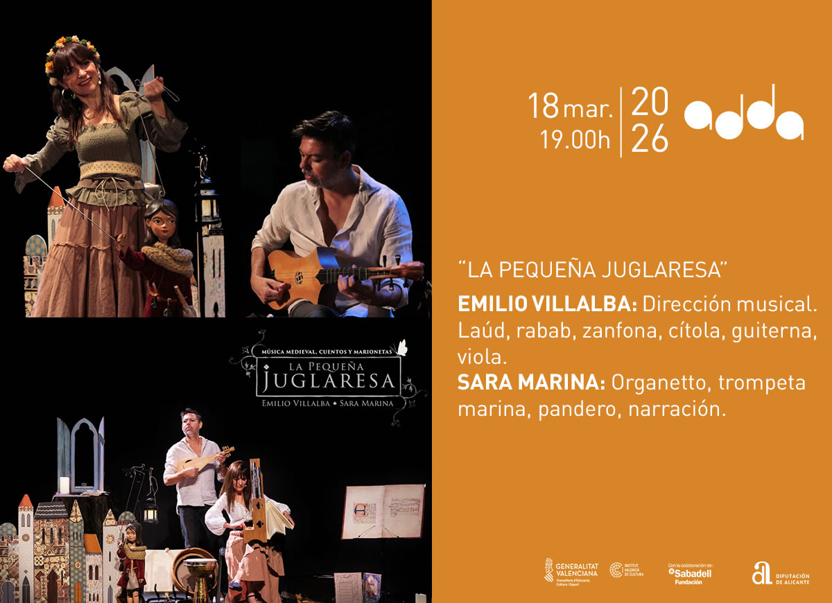 La Pequeña Juglaresa es un concierto de música antigua para niños y público familiar. Un espectáculo que conjuga el teatro, la narración, marionetas y la música en directo, con instrumentos históricos y que se desarrolla en la Edad Media.